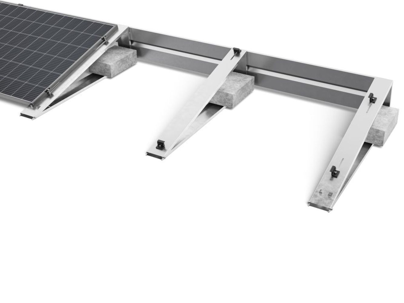 Corab PB-096 installeres lynhurtigt og har få komponenter. Strukturen kan være både ballast og invasiv (fastgjort til tagfladen). Dedikeret til sydorienterede installationer. TModulet monteres vandret, og hældningsvinklen er 15 grader. Den er udelukkende lavet af Magnelis, hvilket garanterer høj anti-korrosionsbestandighed. Modulerne er monteret i landskabsorientering.